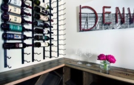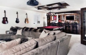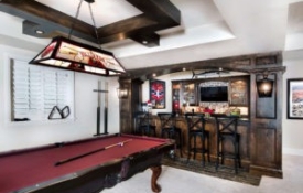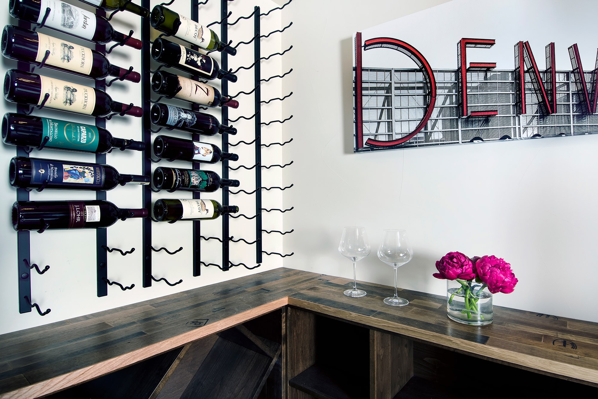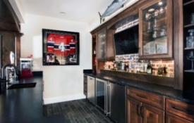 This redesigned space centers around a custom wet bar and includes a 300-bottle wine cellar.