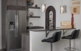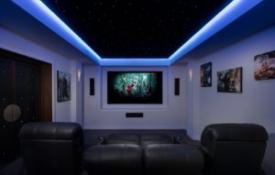 For their downtime, the clients can enjoy their game area, wet bar and wine cellar, or head into their theater space. The theater holds a projector screen, fiber-optic ceiling, tiered seating and surround sound for the full home theater effect.