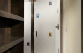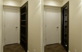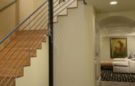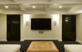 Designed for an empty nester couple who needed a cool and fun place to hang-out with their children and grandchildren in their Cherry Creek townhome. This basement is a perfect balance with a large sitting area for TV watching on the latest flat screen TV with high gloss Chinese black finished cabinets and paint grade ceiling beam work. A sleek entertaining style wet bar with two under-counter refrigerators, ice maker, dishwasher and microwave are ideal for hosting parties. From the wet bar you peer into the professionally finished and climate conditioned wine cellar. In the private area of the basement there is a bedroom and a ¾ bathroom that is hidden from the hallway by a bookcase door.