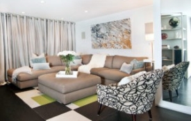 The modern flare is carried through to the living space, with a contemporary wall mounted fireplace and television above. A bonus room in the basement makes for a perfect play area for kids or a quiet retreat for parents.