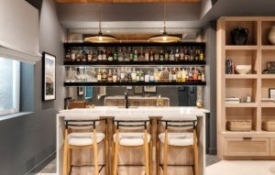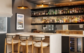 Unlike our typical remodeling projects, this home was practically brand new—just a year old when we began. The simple finished basement, a blank canvas with its stark white walls and soaring 10′ ceilings, became the foundation for an ambitious design. Inspired by the grandeur of a luxury Art Deco bar atop a New York City high rise, our clients envisioned a sophisticated, glamorous space. While no structural changes were needed, the real artistry came through in the meticulous selection and combination of finishes. Every material, color, and detail was chosen to capture the essence of timeless elegance and transform the basement into a show-stopping retreat.