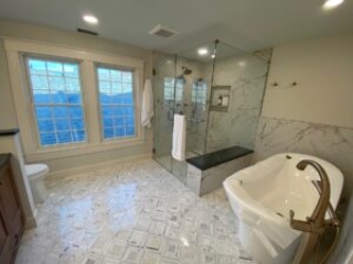 A light and bright renovation of a crawlspace along with the primary bathroom.