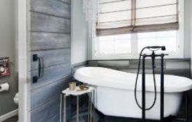 A stunning bathroom remodel with a claw foot tub as a focal point.